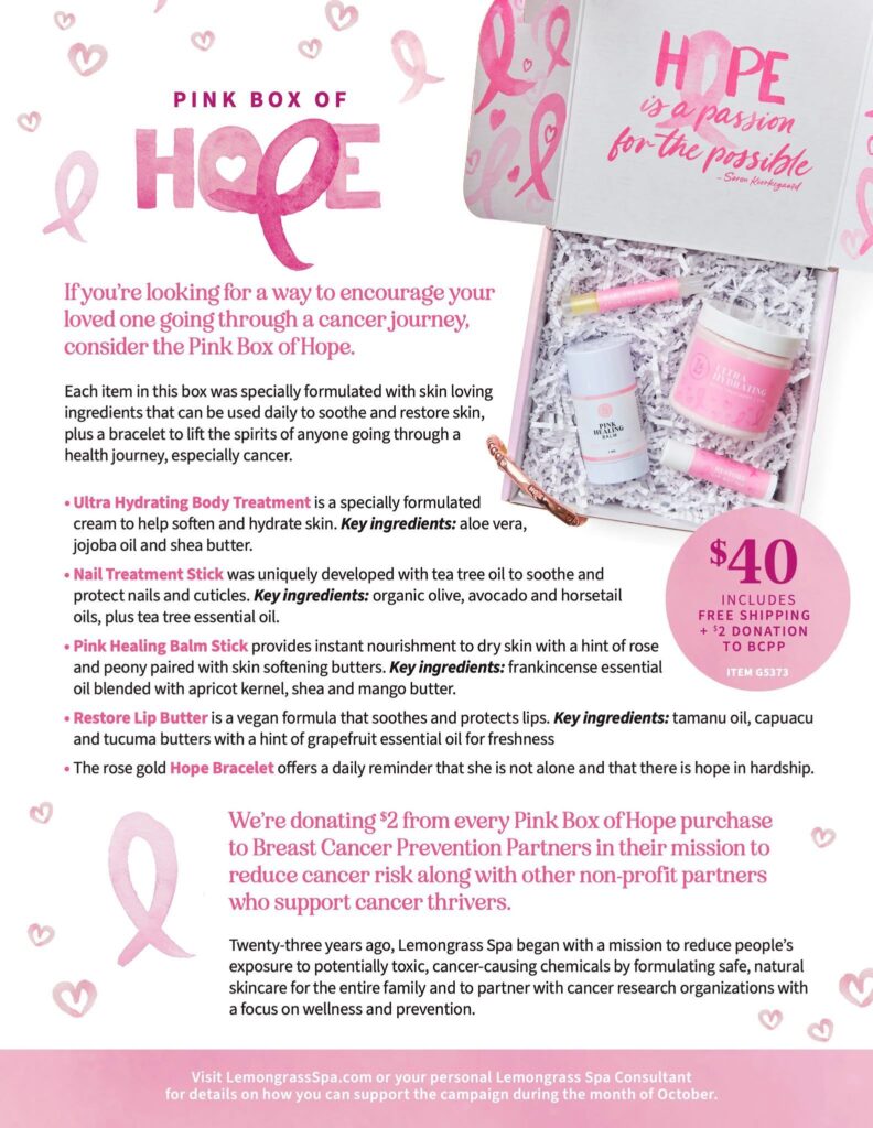 I am also looking to partner with folks that want to sponsor an event to get Pink Boxes of Hope in the hands of Cancer Patients or a Cancer Treatment Center.